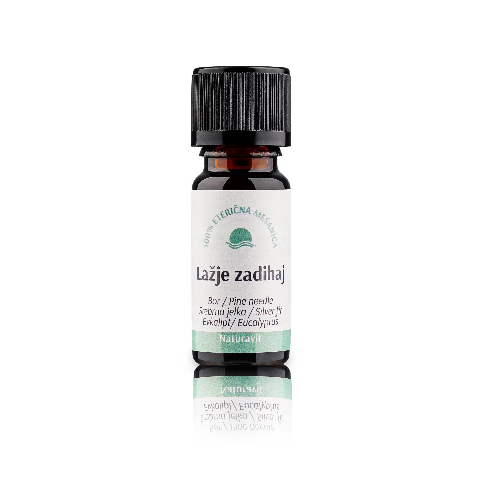 Naturavit mešanica eteričnih olj Lažje zadihaj je 100 % eterična mešanica olj bora, srebrne jelke in evkalipta. Naturavit eterično olje lahko uporabite za aromaterapijo, odišavljenje prostorov, za kopeli ali masaže.