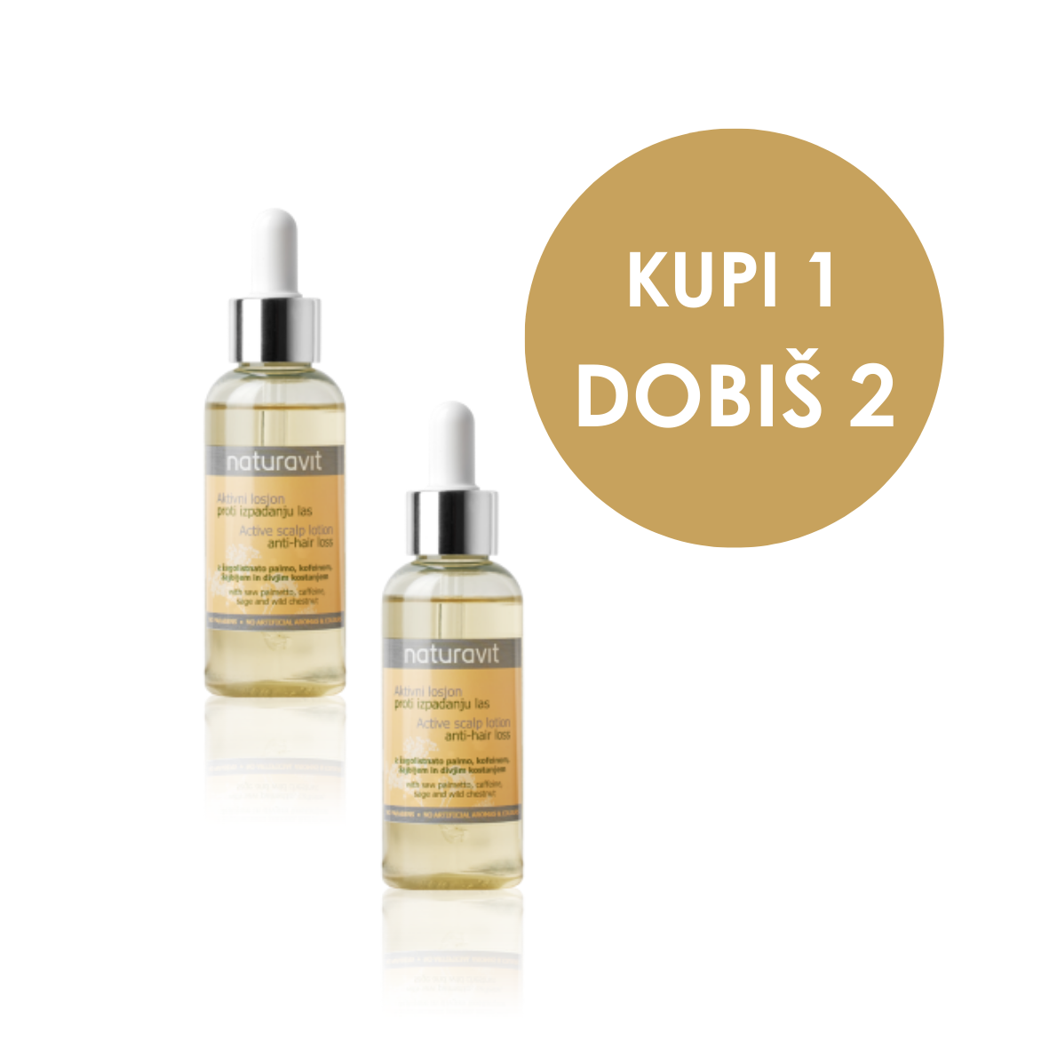 Aktivni serum proti izpadanju las pomiri lasišče in zavira izpadanje ali redčenje las. Žagolistnata palma učinkovito preprečuje izpadanje. Kofein izboljša prekrvavitev na lasišču. Žajbelj razkužuje in pomirja lasišče. Divji kostanj pa obnovi in zaščiti lasni koren. Po nanosu ne izpirajte iz lasišča.