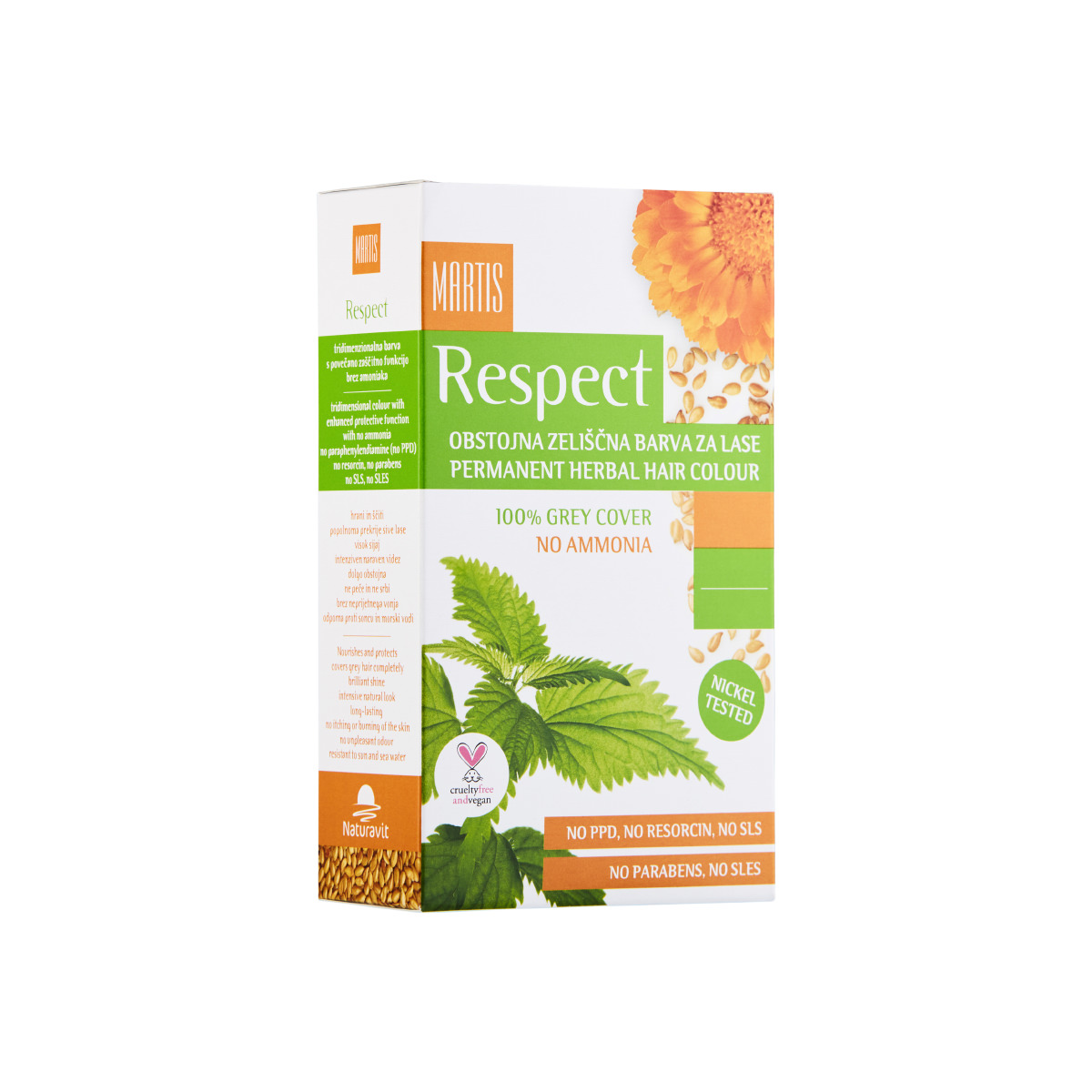 Martis Respect združuje intenzivno barvo in negovalno formulo z rastlinskimi izvlečki za sijoče, močne in zdrave lase po vsakem barvanju.